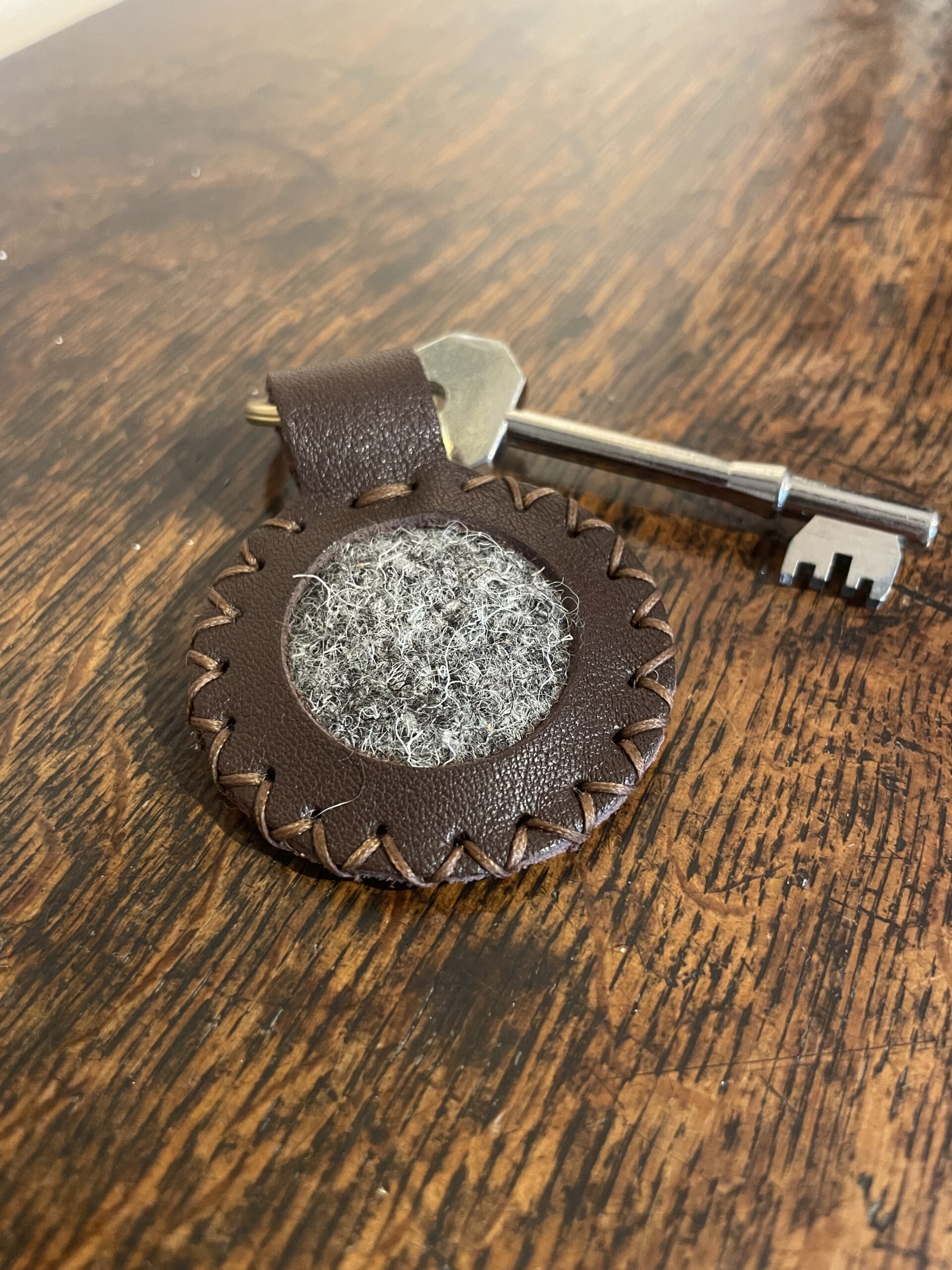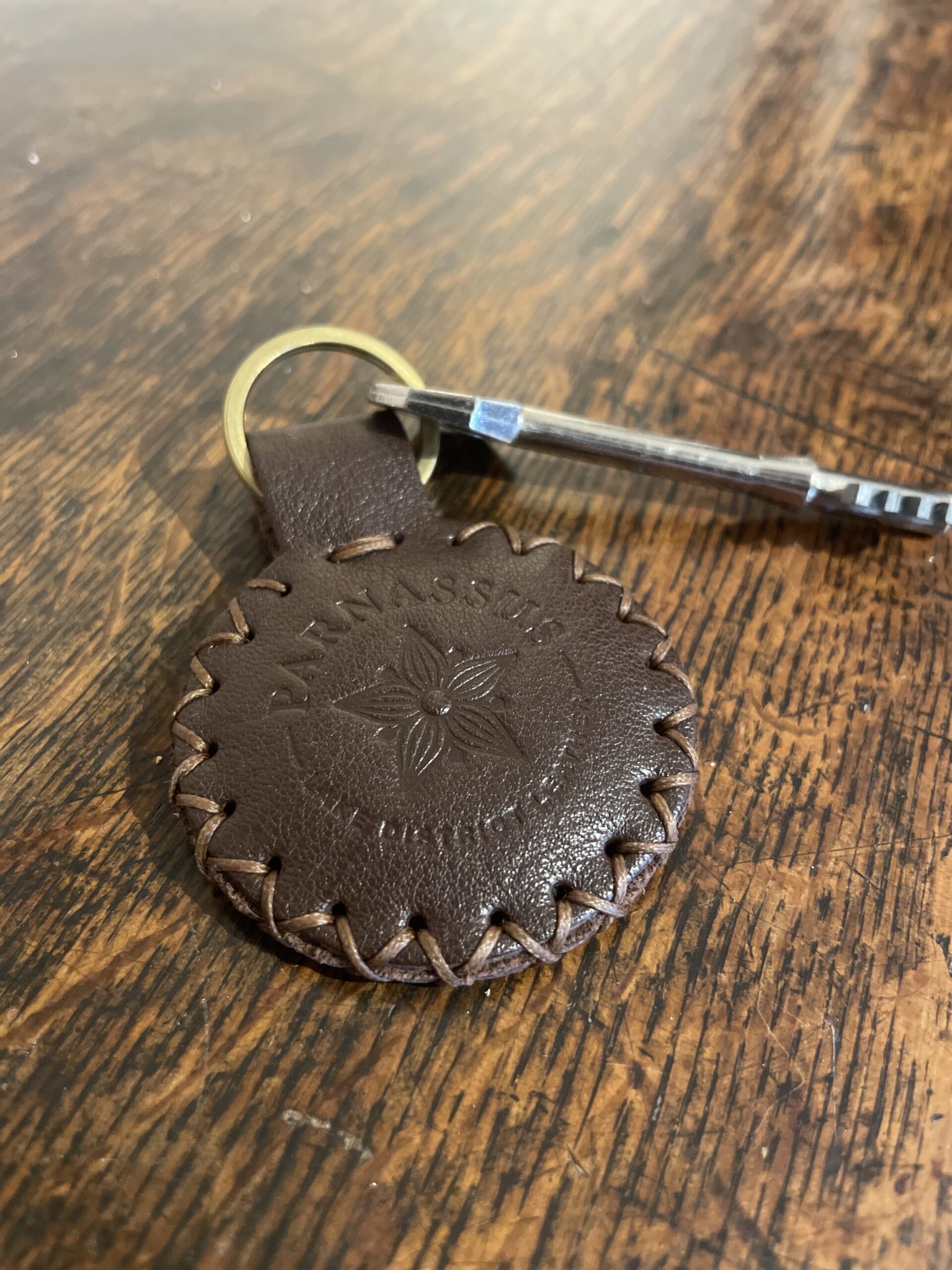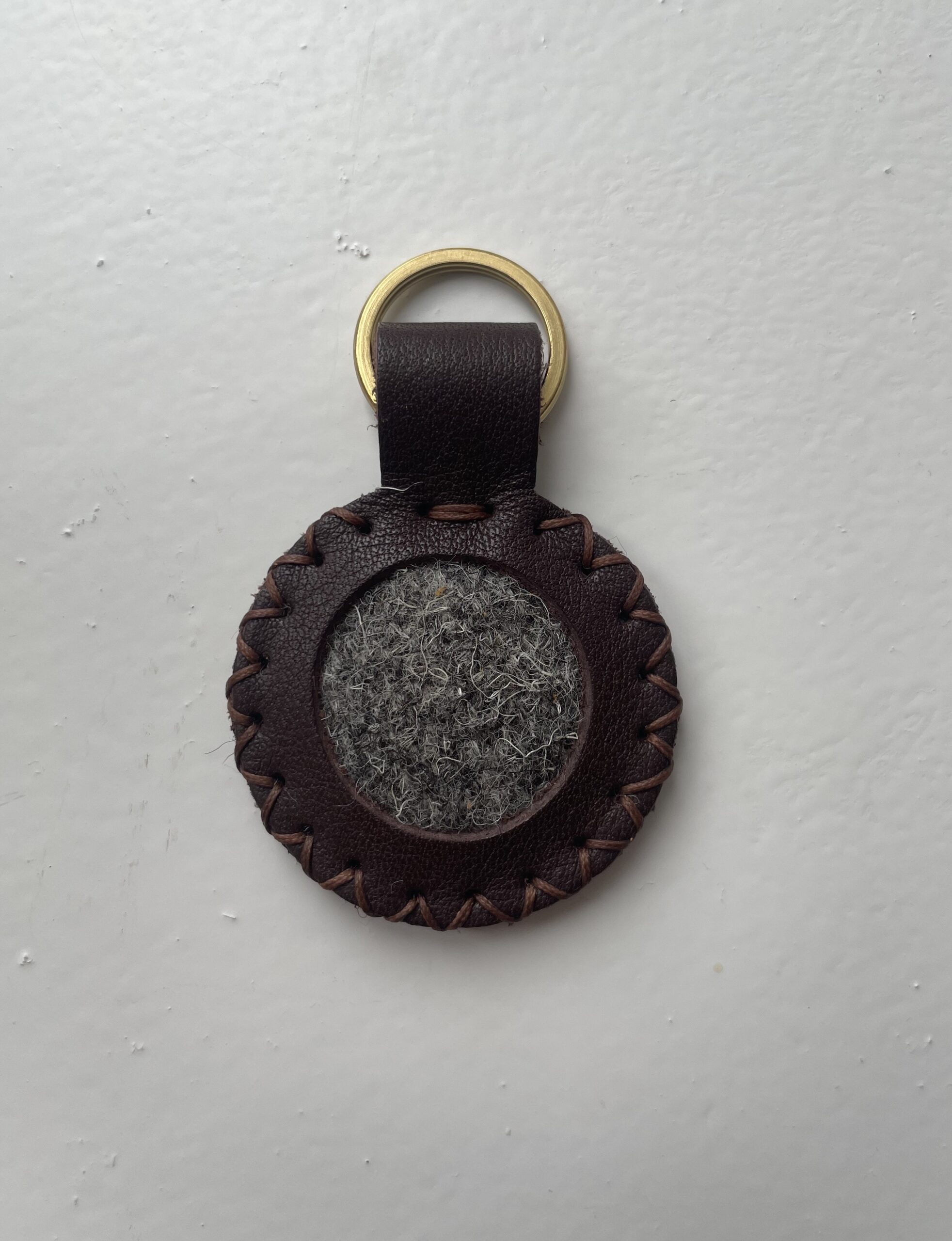 The simplest of our keyrings in collaboration with Lake District Tweed, combining the valley tweed with the corresponding Parnassus Leather valley colour. The keyring is crafted from our supple full grain leather with a swatch of tweed hand-stitched into the design with sturdy nylon thread. Each one is finished with a brass ring and our Parnassus logo, which is made to order with either a shiny or simple embossing – a symbol of its traceable, sustainable origin. Timeless, intentional, and crafted to last, it’s a small accessory that speaks volumes about the conscious consumer.